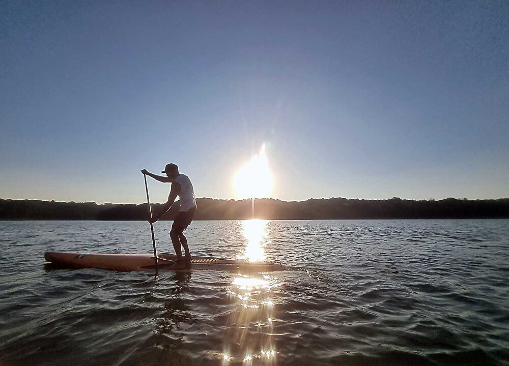 Lá, é possível remar em caiaques e Stand Up Paddle, diversão garantida para a família.