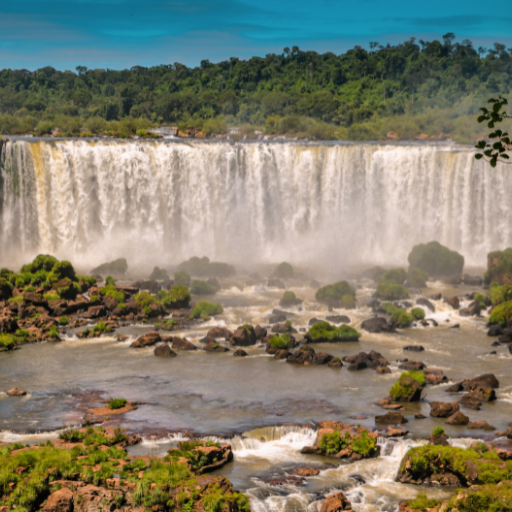 O rugido ensurdecedor das águas em queda livre ecoa em nossos ouvidos, enquanto a névoa espiralada nos envolve em um abraço úmido. Diante de nós, um espetáculo de grandeza e poder se desenrola, com as águas turbulentas formando arcos íris efêmeros que se desvanecem na bruma.